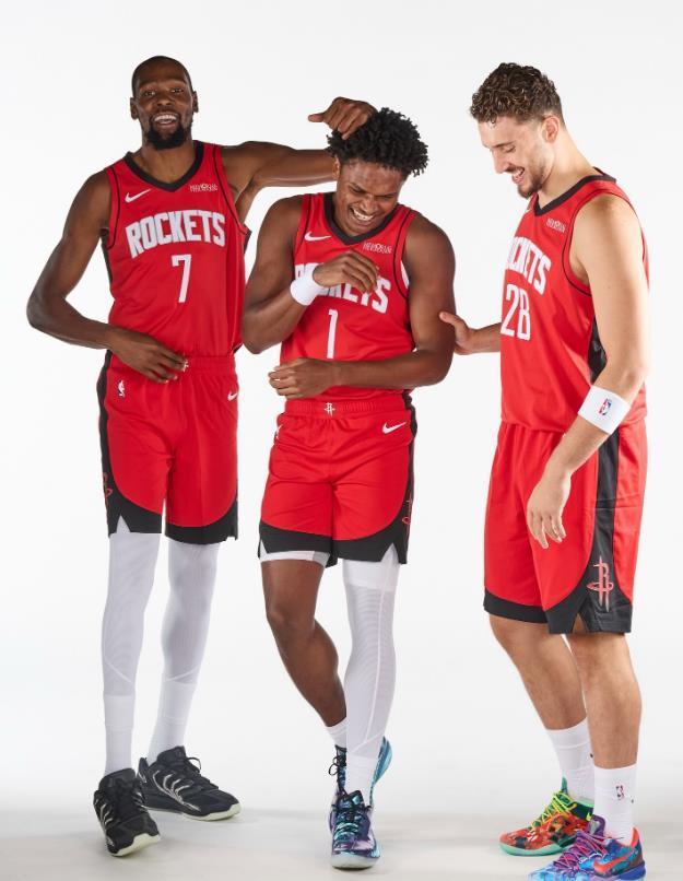 前一场对阵爵士队的比赛,火箭队的首发阵容是控卫阿门汤普森,得分后卫谢泼德,小前锋杜兰特,大前锋小史密斯,中锋申京。本场比赛,火箭队主动调整了他们的2号位首发,年轻的谢泼德回到了替补席,而27岁的底薪后卫奥科吉则重新回到了首发阵容当中。